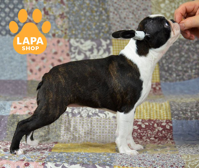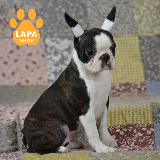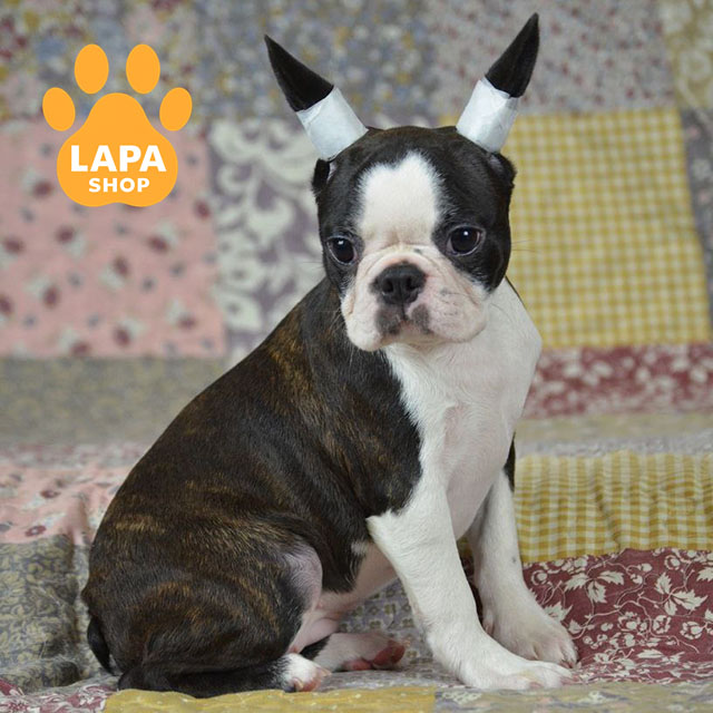 Intrigue — неймовірно яскрава дівчинка бостон тер’єра з чорно-тигровим забарвленням та виразними білими відмітками, які підкреслюють її елегантний силует. Її гармонійні пропорції та виразна мордочка роблять зовнішність особливо привабливою. Завдяки чіткому контрасту шерсті вона виглядає ефектно та дуже породно.