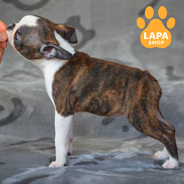 Judith — чарівна дівчинка породи бостон тер’єр з привабливим чорнотигровим забарвленням з білими вставками. Її гармонійна статура, виразна мордочка та правильні пропорції створюють справжній породний тип.