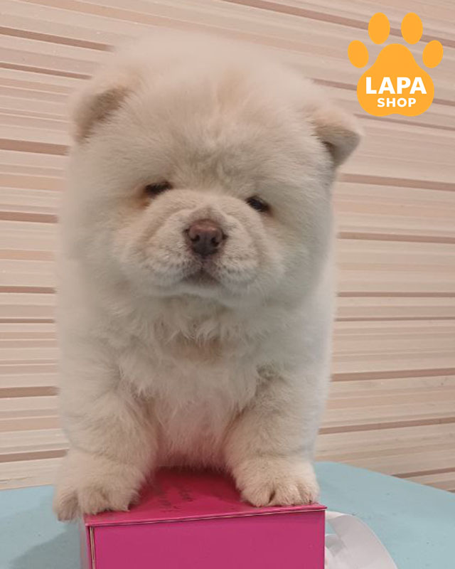 Ця ніжна дівчинка породи чау-чау з елегантним кремовим забарвленням, яке надає їй особливо м’якого та шляхетного вигляду. Її пухнаста шерсть формує ефектну “хмаринку”, що робить зовнішність ще більш виразною та привабливою. Витончений силует і гармонійні риси створюють образ справжньої маленької леді.