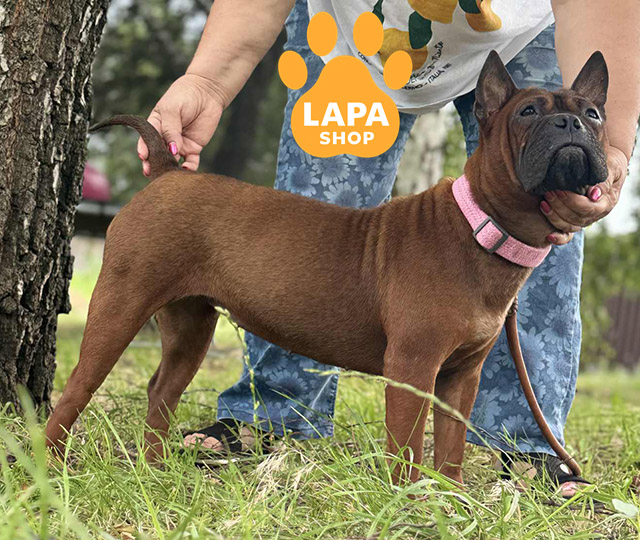 Ця рідкісна красуня породи китайський бульдог має міцну статуру, коротку блискучу шерсть і виразну мордочку, що надає їй особливого шарму. Її екзотичний вигляд та впевнений вираз роблять її справжньою перлиною серед собак. Завдяки гармонійним пропорціям та гордовитій поставі вона виглядає велично й елегантно. Її глибокий погляд і благородний вигляд роблять цю дівчинку справжньою окрасою серед собак цієї унікальної породи.