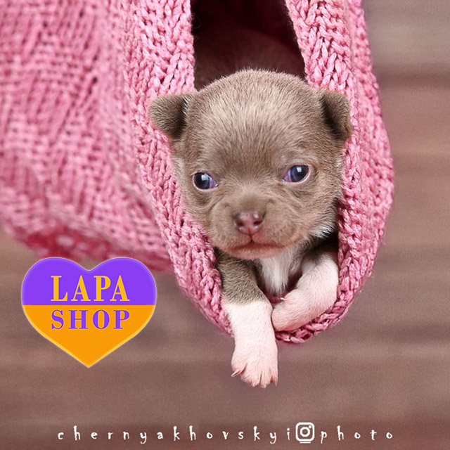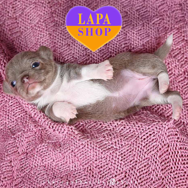 Ця ніжна дівчинка породи чихуахуа з ліловим забарвленням є справжнім втіленням грації. Її елегантна постава та чудовий колір роблять її ще більш особливою, а маленький розмір додає їй незабутнього шарму. Лілове забарвлення надає їй витонченості, роблячи її ідеальним компаньйоном.