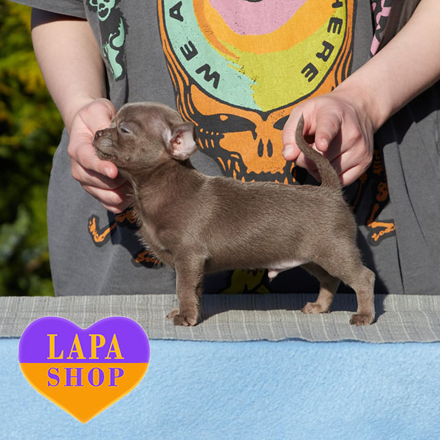 Howard — чарівний хлопчик породи чихуахуа з ніжним ліловим забарвленням, яке надає йому вишуканого вигляду. Його компактне тільце та блискуча коротка шерсть виглядають бездоганно. Миловидна мордочка й акуратні вушка роблять його справжньою прикрасою серед малюків.