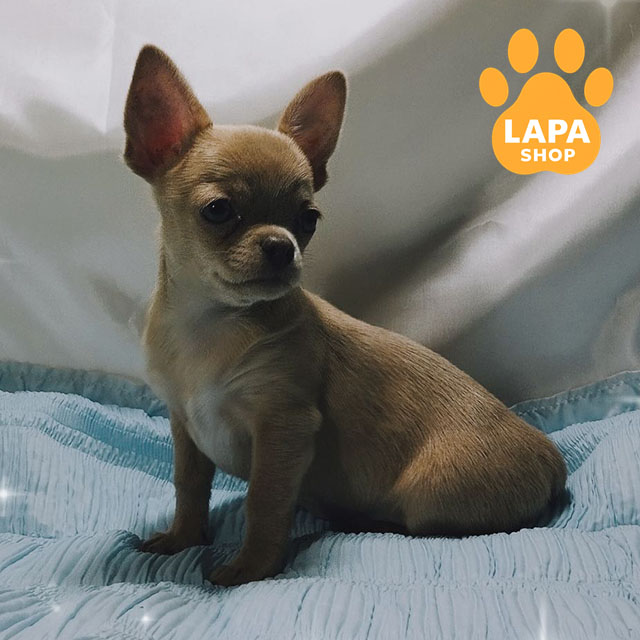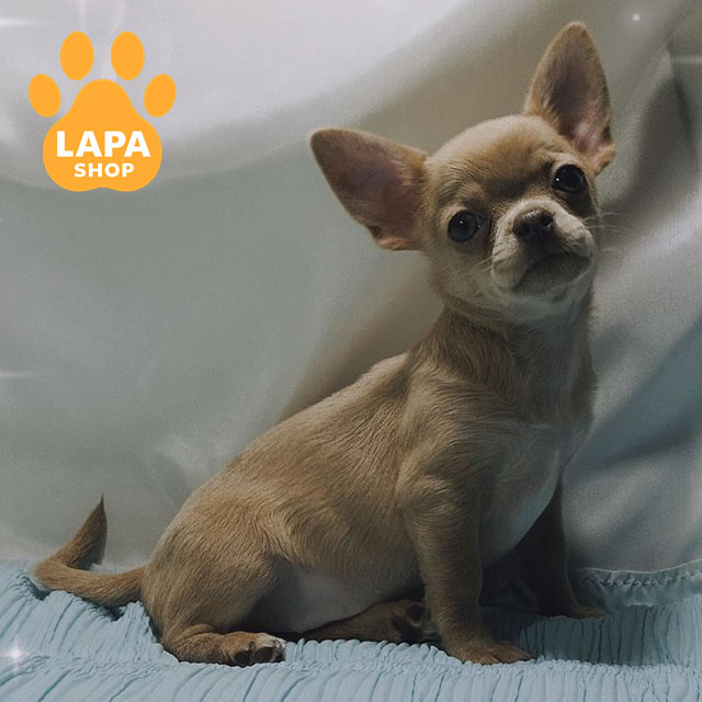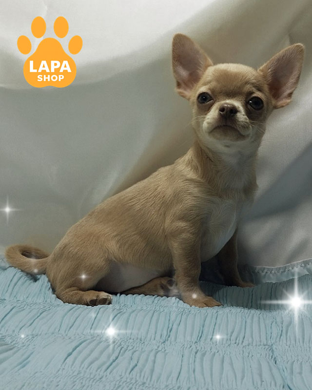 Дівчинка чихуахуа короткошерстна з дуже рідкісним та ефектним ліловим забарвленням, яке виглядає ніжно й благородно. Компактний коббі-тип, гармонійна статура та породна голівка підкреслюють її відповідність стандарту породи. Акуратна зовнішність і правильні пропорції роблять цуценя справжньою маленькою красунею.