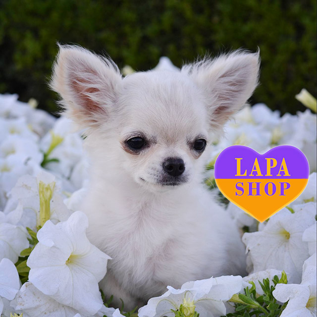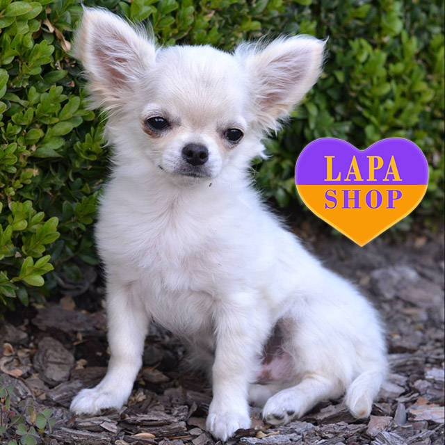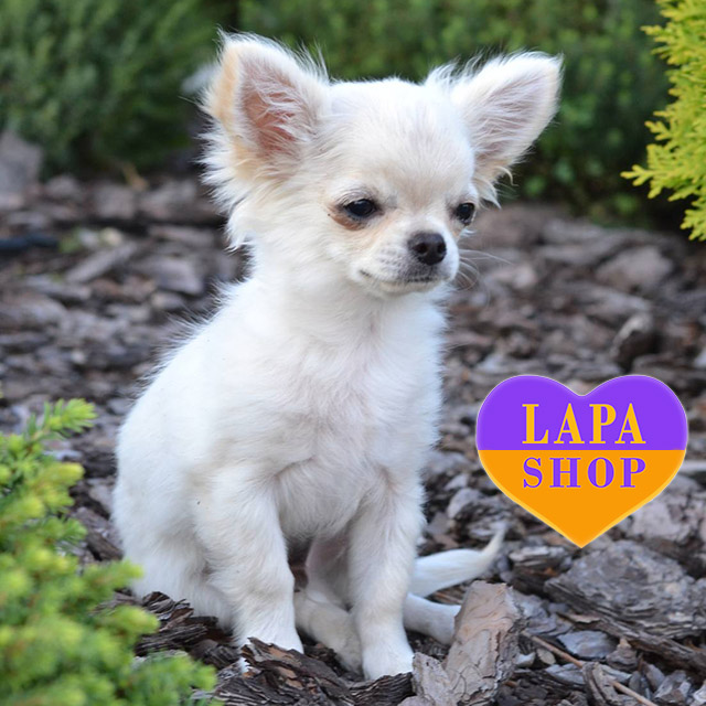 Біло-кремовий хлопчик довгошерстої чихуахуа Ursus приваблює своєю ніжністю і елегантністю. Його компактний розмір і красиве забарвлення роблять його чудовим вибором для сім’ї, що цінує відданість і ласку.