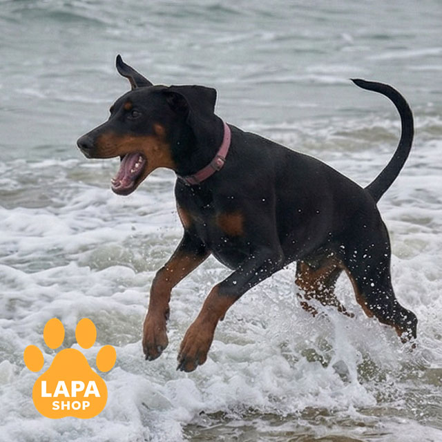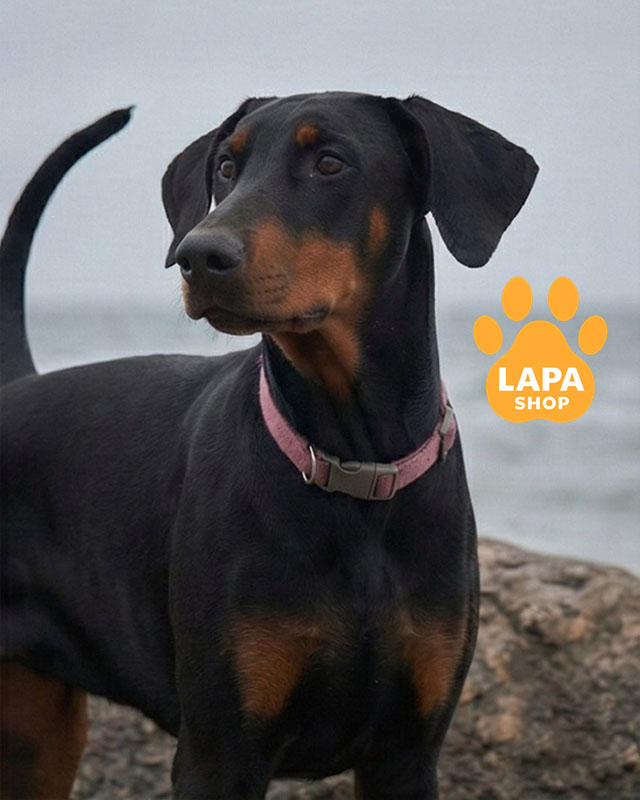 Ця елегантна та гармонійна дівчинка породи доберман, що має класичне чорно-підпале забарвлення. Її виразна зовнішність і впевнена постава роблять її справжньою окрасою породи.