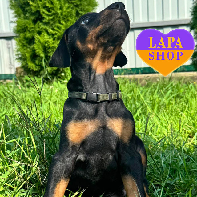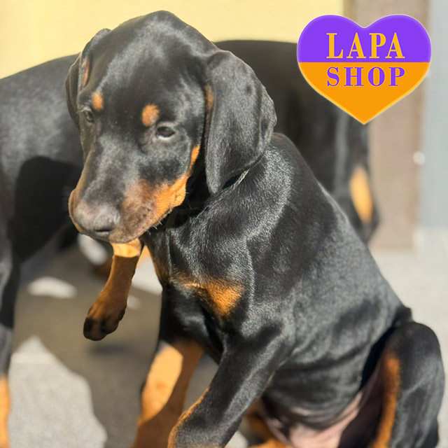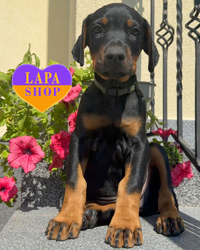 Маленький джентльмен доберман чорного підпалу з гармонійною статурою та елегантною зовнішністю. Його привабливе забарвлення і благородна постава роблять його ідеальним супутником для родини.