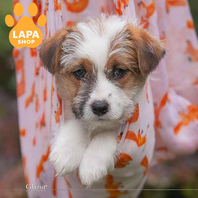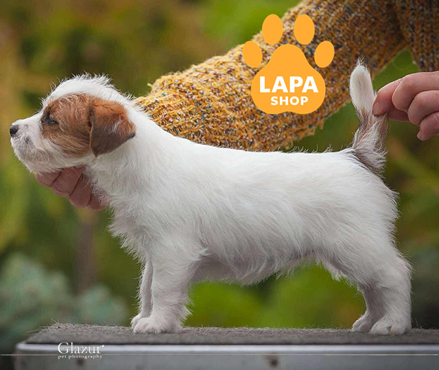 Ця мила дівчинка породи джек-рассел-тер’єр має привабливе біле забарвлення з рудими відмітинами, що робить її образ яскравим і виразним. Її елегантна статура та пропорційна будова додають особливого шарму. Ця красуня неодмінно привертає увагу своєю зовнішністю та витонченістю.