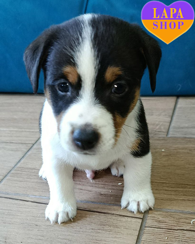 Цей граційний хлопчик породи джек-рассел-тер’єр із яскравим триколорним забарвленням. Його симетрична маска на мордочці та рівномірні плями на тілі роблять зовнішність особливо привабливою. Гладкошерстий, компактний, із правильними пропорціями — справжній представник своєї породи.