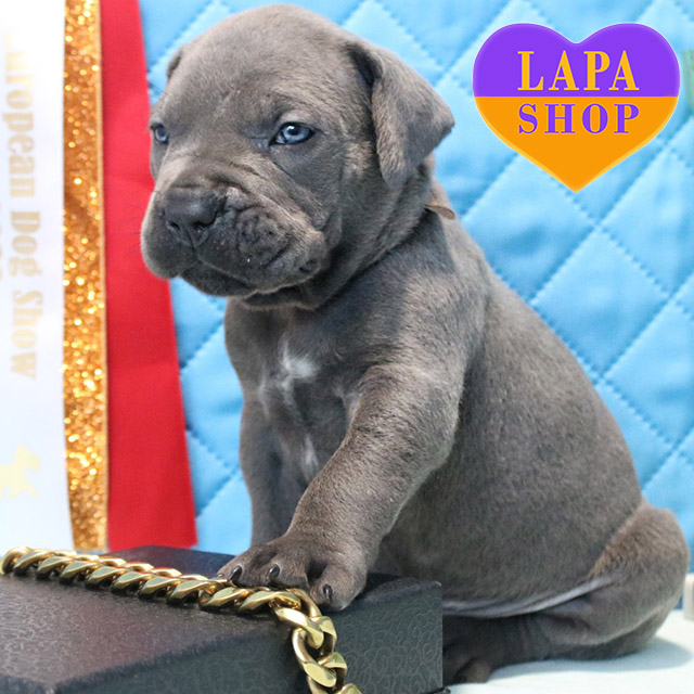 Цей красунчик породи кане корсо має вражаюче сіре забарвлення, яке надає йому шляхетного вигляду та виділяє серед інших. Його кремезна статура — говорить про силу та впевненість.