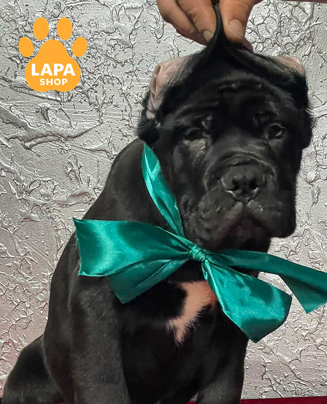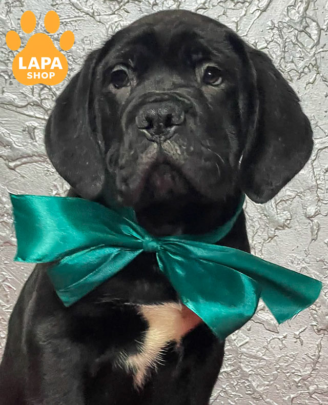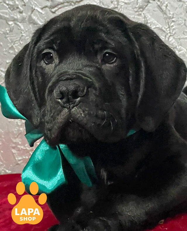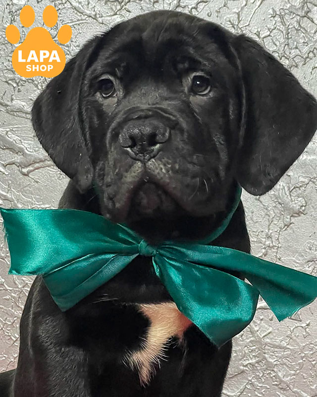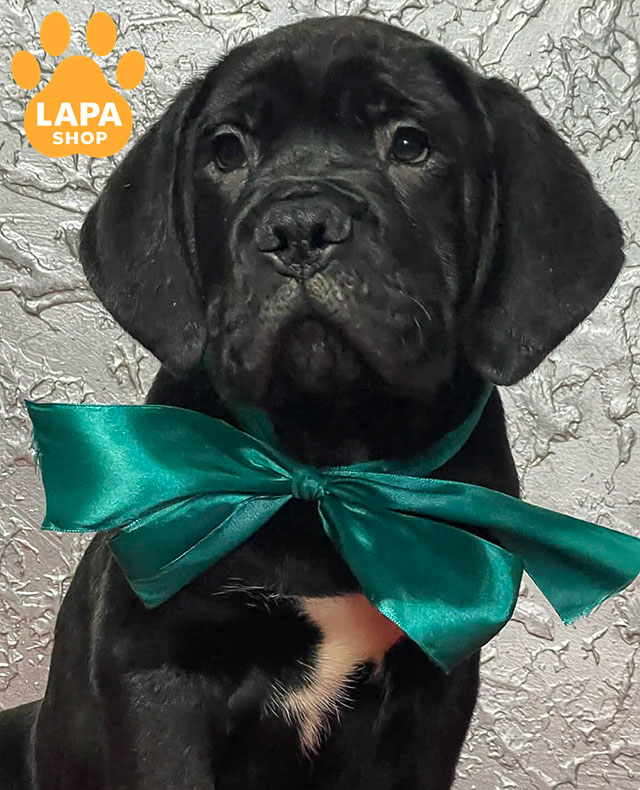 Ефектний хлопчик породи кане корсо у насиченому чорному забарвленні, яке підкреслює його силу та благородний вигляд. Міцна статура, гармонійні пропорції й упевнена постава формують яскравий породний образ.