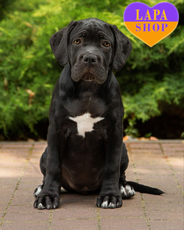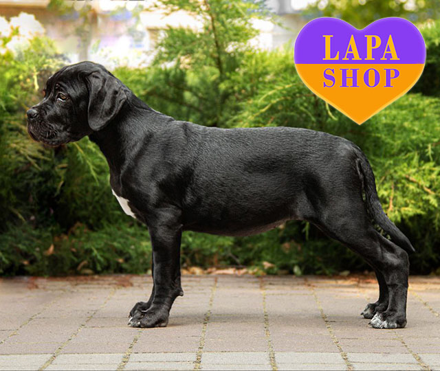 Елегантна чорна дівчинка породи кане корсо вже готова вирушити у свій новий дім. Її благородна зовнішність, міць і гармонійні пропорції підкреслюють типовість породи. Ця красуня має глибокий погляд і впевнену поставу, що додає їй особливого шарму.