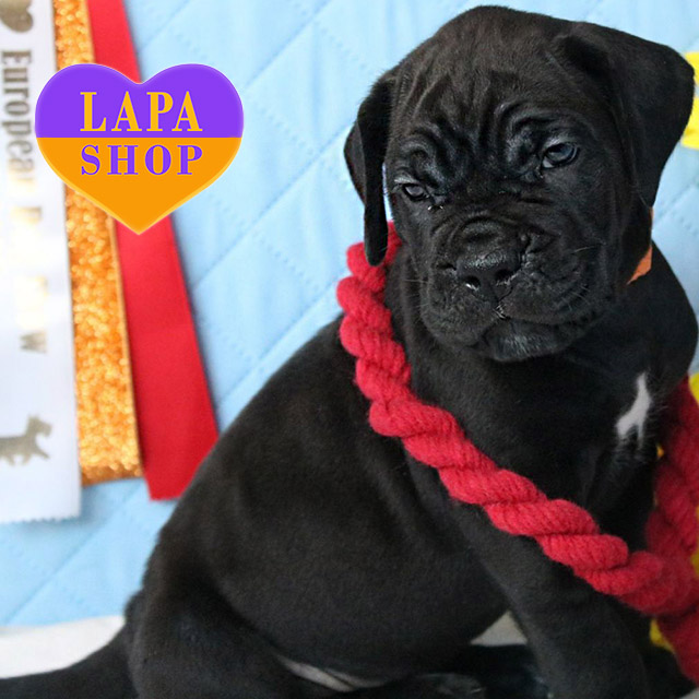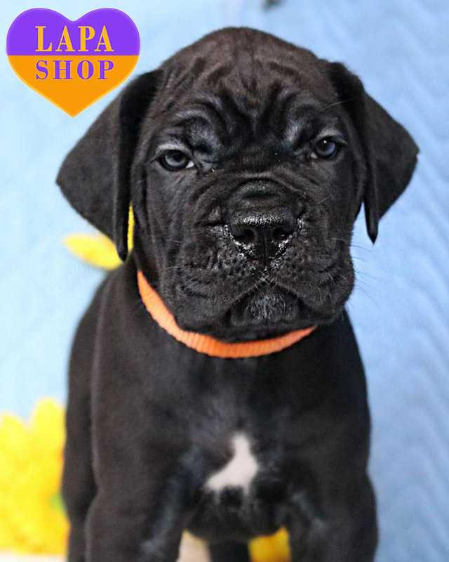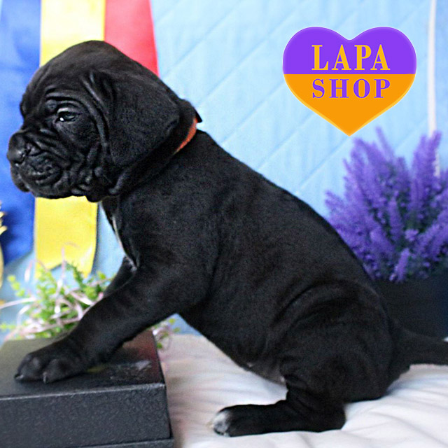 Ця елегантна дівчинка породи кане корсо з глибоким чорним забарвленням, яке підкреслює її граційність і силу. Вона має благородну зовнішність, міцну будову та врівноважений темперамент, що робить її ідеальною як для розведення, так і для активного сімейного життя. Її погляд уже вражає глибиною та інтелігентністю.