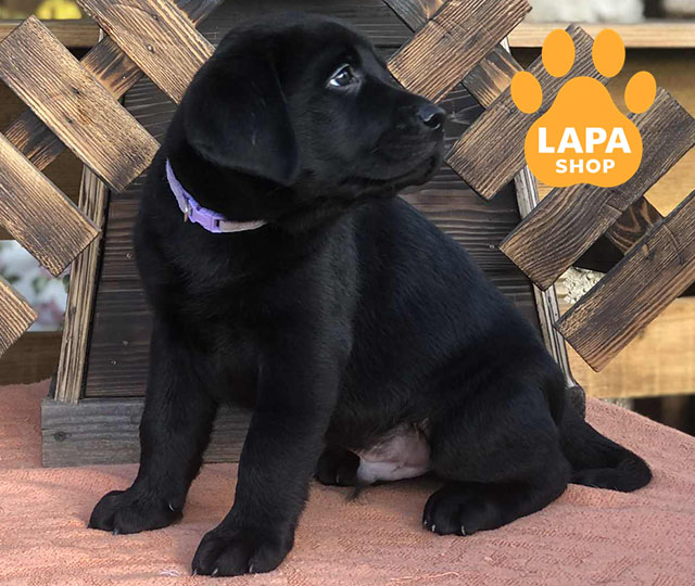 Милий хлопчик породи лабрадор ретривер із насиченим чорним забарвленням. Його блискуча шерсть і добрий погляд одразу привертають увагу.