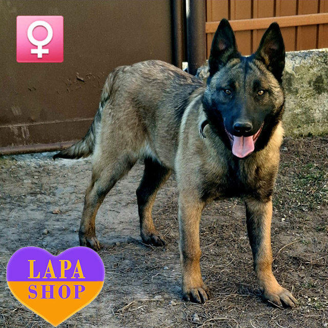 Ця дівчинка породи бельгійська вівчарка (малінуа) з гарною статурою та живим блиском в очах. Її активність і врівноваженість роблять її перспективною для спорту, охорони чи служби. Виведена від батьків з перевіреною генетикою та стабільною психікою.