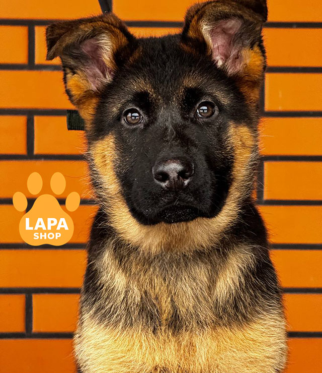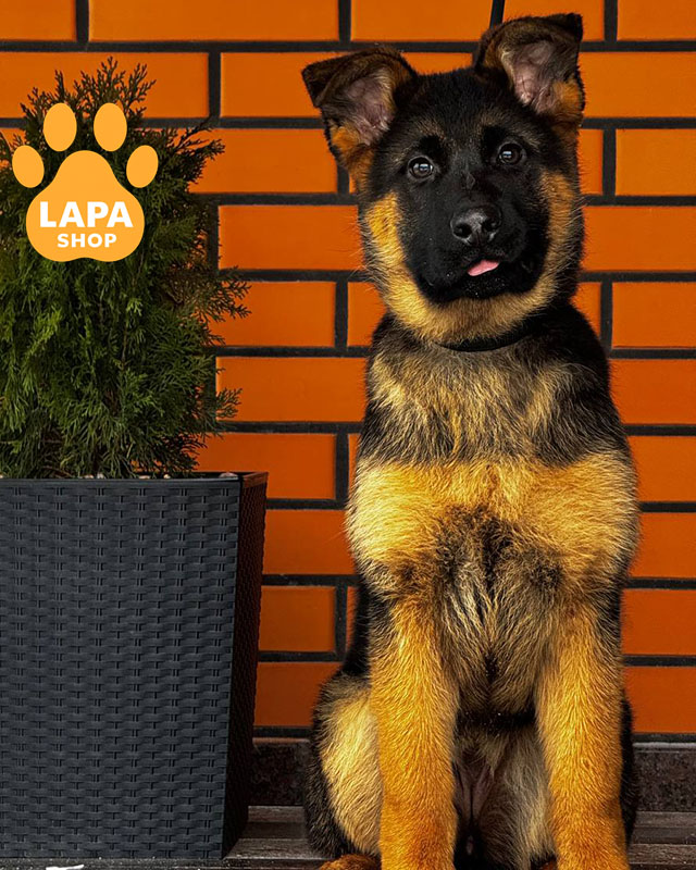 Дівчинка породи німецька вівчарка з чепрачним забарвленням має гармонійне тіло та класичну поставу, властиву породі. Її благородна голова та правильні пропорції підкреслюють породні якості. Виглядає елегантно та породисто, притягує увагу зовнішньою красою.