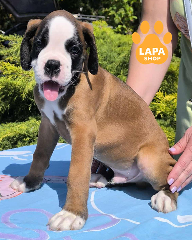 Милий хлопчик породи німецький боксер з насиченим рудим забарвленням. Його гармонійна статура і виразна мордочка підкреслюють породність та роблять зовнішність особливо привабливою. Шерсть рівномірного відтінку додає йому чарівності та елегантності.