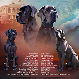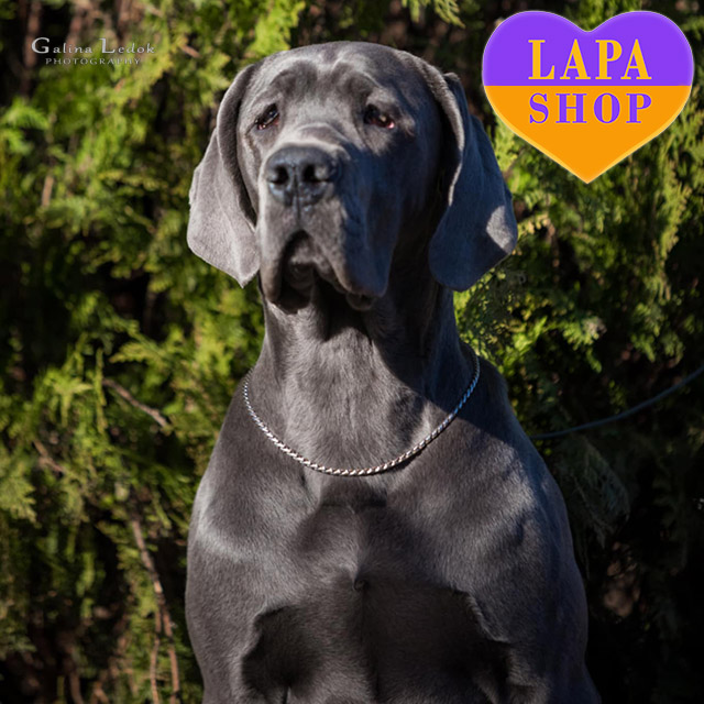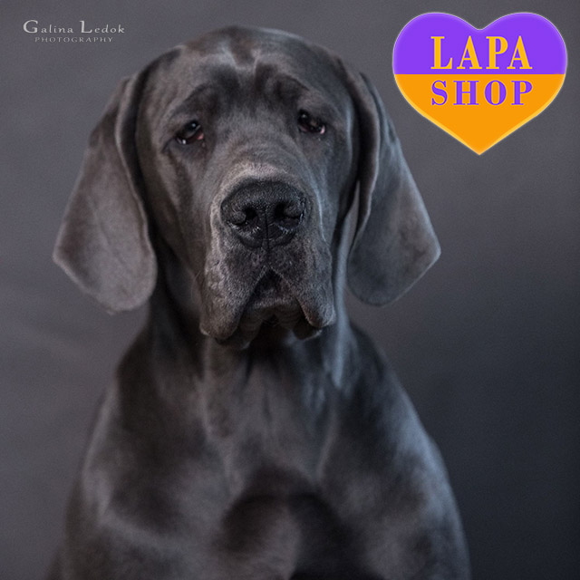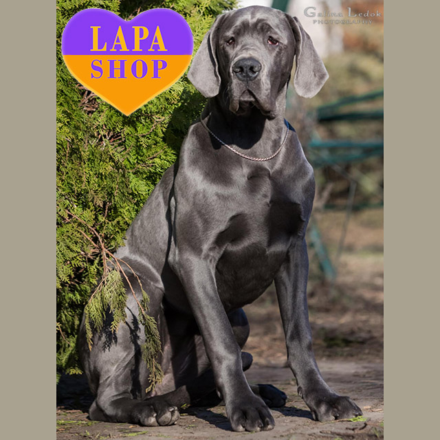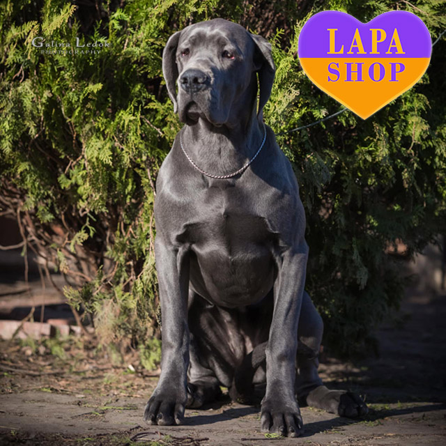 Ayris Galaxy — величезна красуня з блакитним окрасом, що вже зараз готова стати частиною вашої родини! Вона соціалізована і прекрасно взаємодіє з людьми та іншими тваринами. Цей прекрасний німецький дог має чудовий темперамент та витончену зовнішність. Її батьки титуловані, а мама імпортована з Польщі.