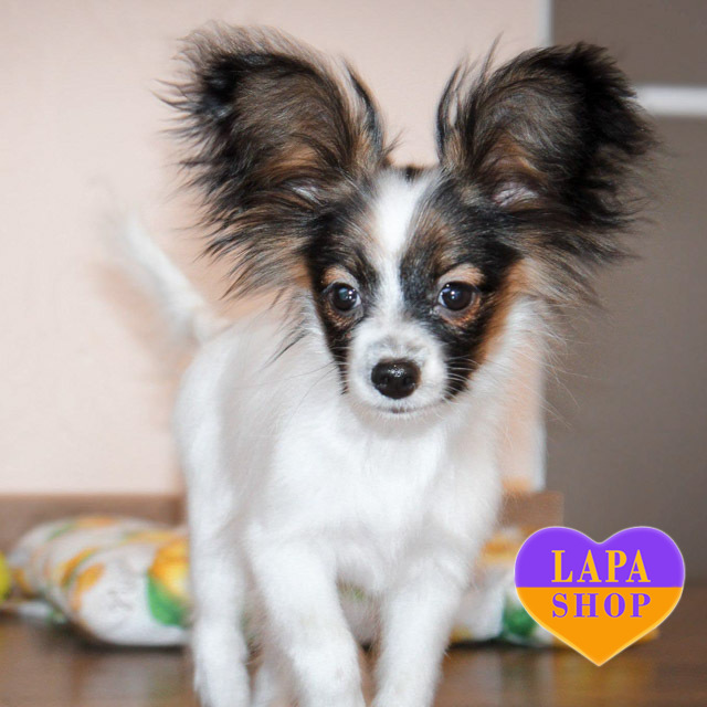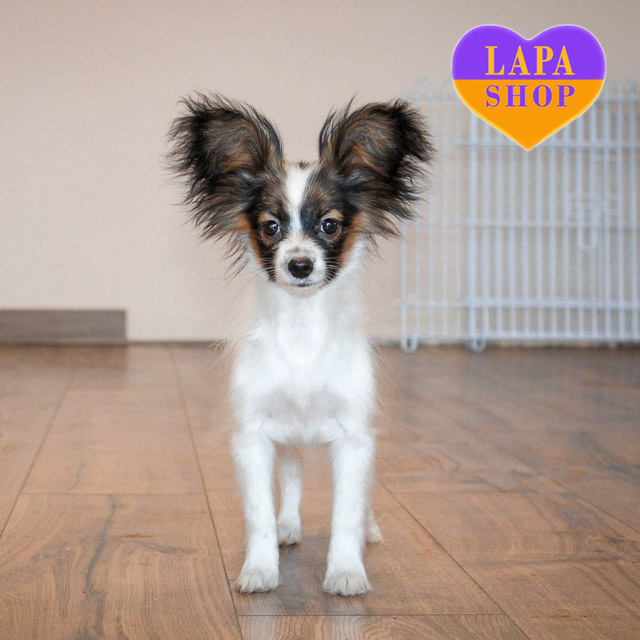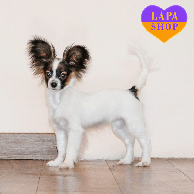 Vienna — чарівна дівчинка папільон з гармонійним триколірним забарвленням. Її природна грація та перспективність роблять її ідеальною для виставок або розведення.