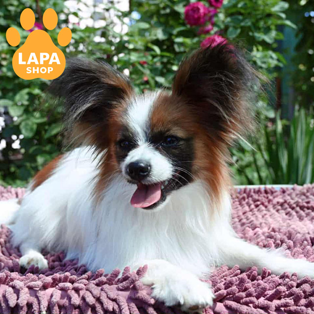 Витончений представник породи папільон із яскравим біло-соболиним забарвленням. Його шовковиста шерсть із насиченими кольорами гармонійно підкреслює граційну будову тіла. Великі виразні очі та елегантні вушка додають йому особливого шарму.