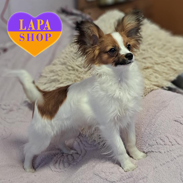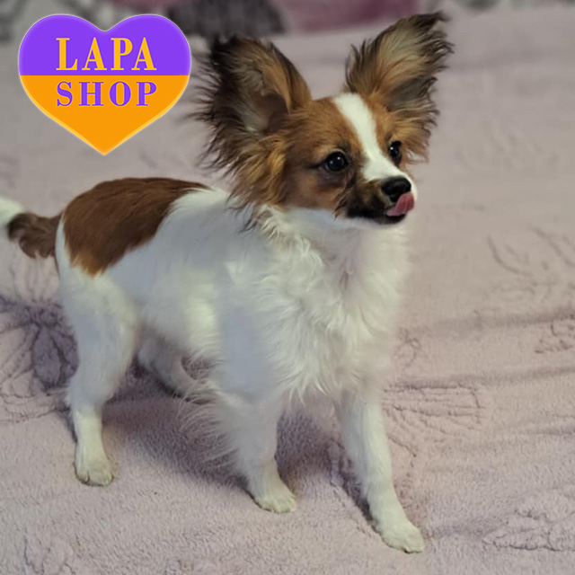 Леон — витончений папільон із розкішним соболиним забарвленням, яке підкреслює його елегантність і шляхетність. Його чарівний вигляд і гармонійна статура не залишать байдужим нікого.