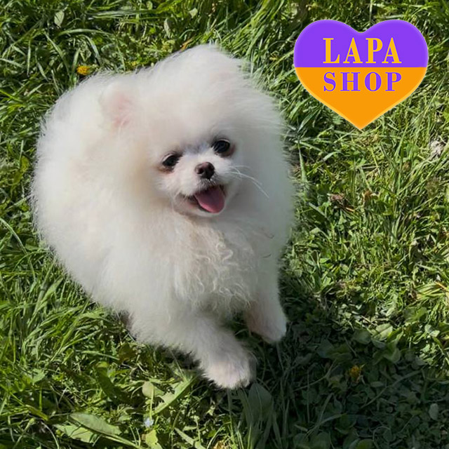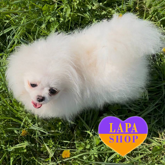Ця чудова дівчинка породи померанський шпіц — справжня мініатюрна красуня з білим забарвленням. Її маленький розмір і пухнаста шерсть надають їй неймовірної чарівності. Вона вже готова стати вірним другом у вашій родині, даруючи радість і тепло.