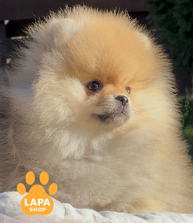 Хана — чарівна дівчинка померанського шпіца з яскравим оранжевим забарвленням, яке підкреслює її породну витонченість. Вона має компактну, пропорційну статуру та доглянуту, пухнасту шерсть, що робить її образ особливо привабливим.