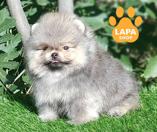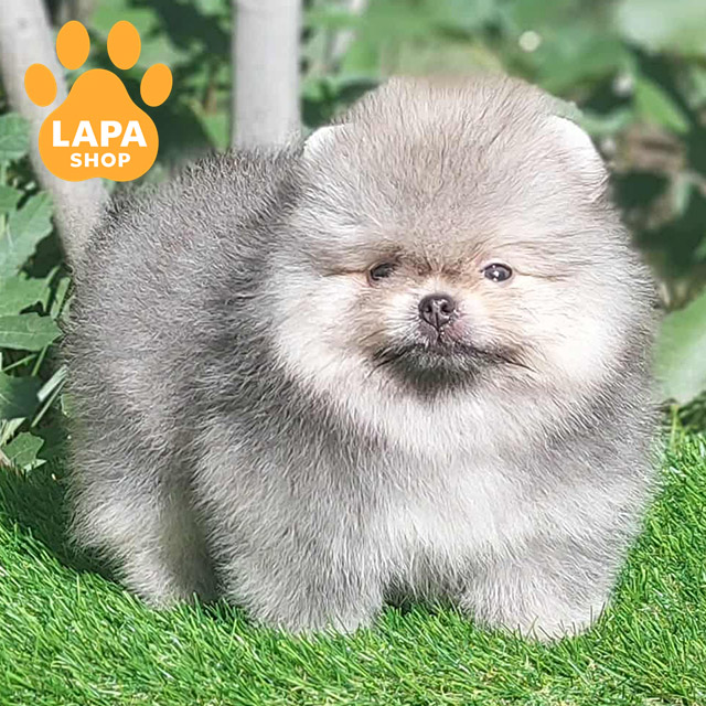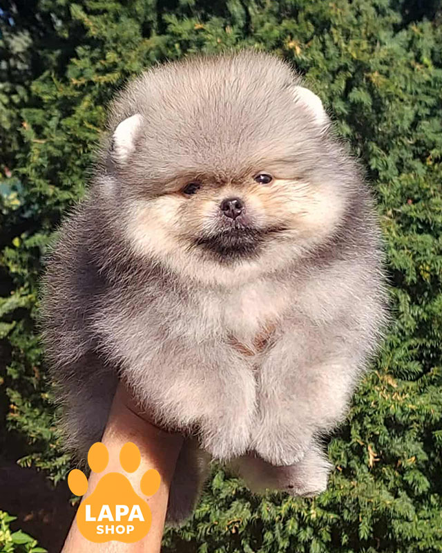 Милий хлопчик породи померанський шпіц із ніжним кремово-соболиним забарвленням. Його пухнасте хутро та допитливий погляд роблять його справжнім маленьким скарбом.