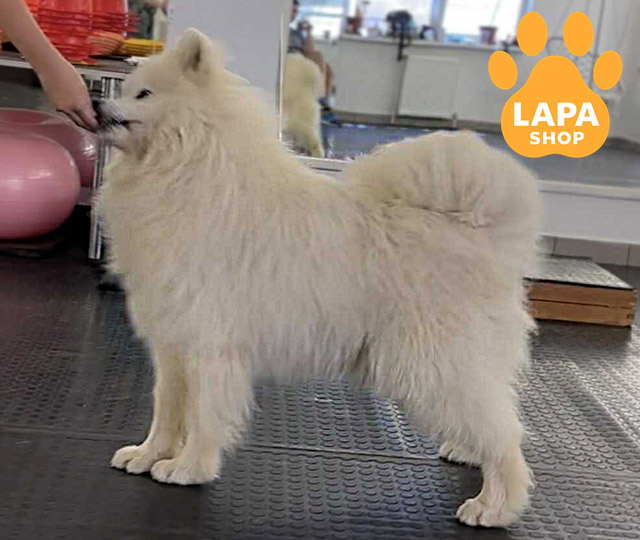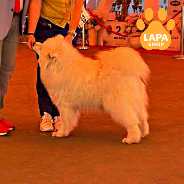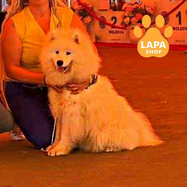 Цей чудовий хлопчик породи самоїд має розкішне біле забарвлення, яке надає йому по-справжньому аристократичного вигляду. Його пухнаста шерсть і доброзичливий вираз мордочки роблять його справжньою окрасою серед самоїдів.
