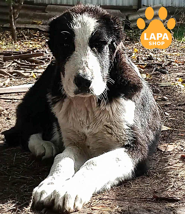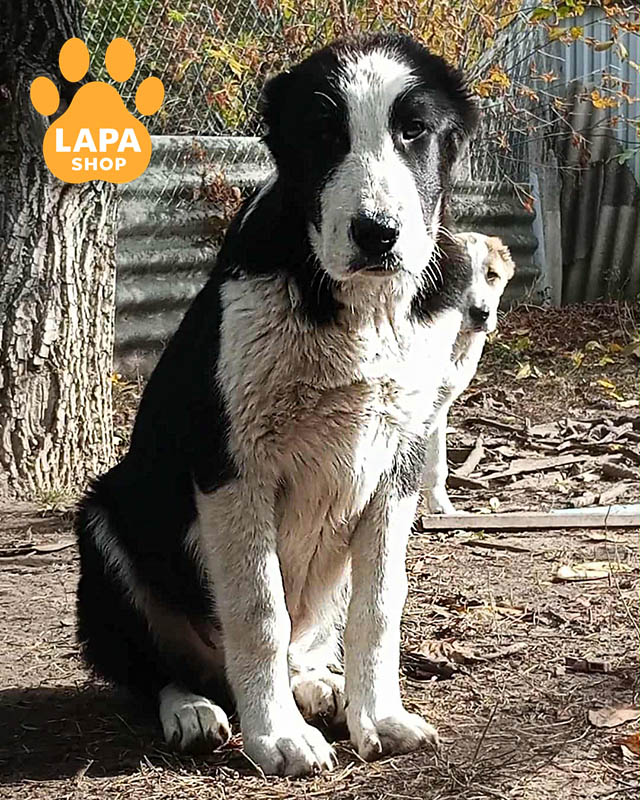 Величний хлопчик породи середньоазіатська вівчарка з контрастним чорним забарвленням і білими відмітинами. Його сильний і гармонійний екстер’єр підкреслює справжній характер охоронця.
