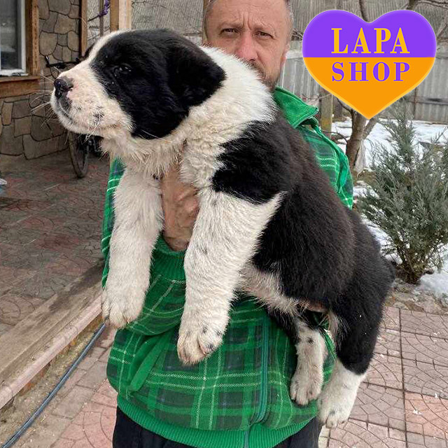 Saikhaly — чорно-білий хлопчик породи середньоазійська вівчарка (алабай)
