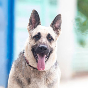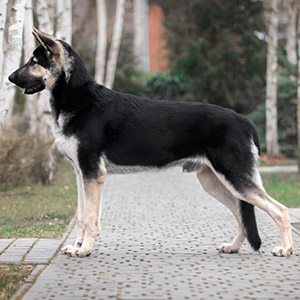 Цей красень має ефектне чепрачне забарвлення, що підкреслює його сильну статуру та виразний погляд. Його породна постава та гармонійні риси роблять його справжнім представником східноєвропейських вівчарок.