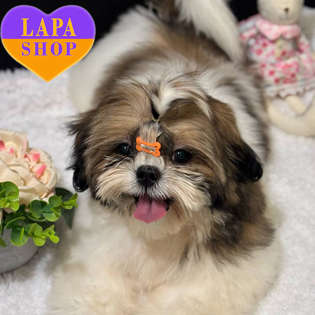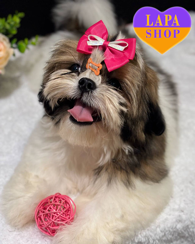 Маленька красуня ороди ши-тцу з м’якою шовковистою шерстю ніжного забарвлення white & gold. Її витончена мордочка та акуратна статура надають їй чарівності та грації. Завдяки доглянутому вигляду дівчинка виглядає як маленька леді.