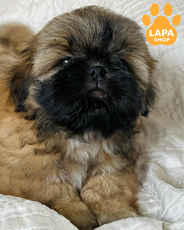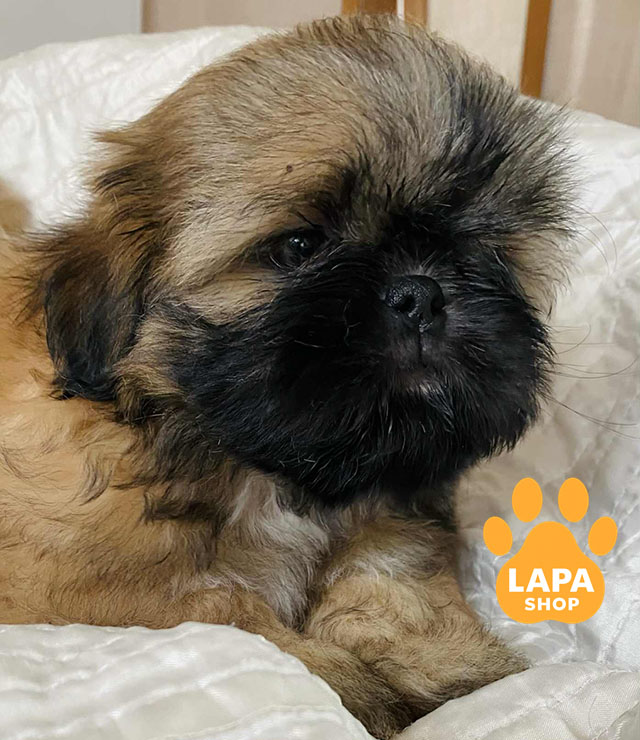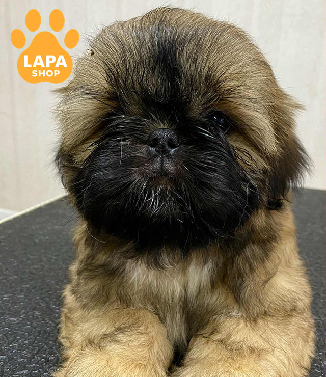 Ця чарівна дівчинка породи ши-тцу має розкішне золотаве забарвлення в масці, яке підкреслює її граційну зовнішність та ніжний вигляд. Її пухнаста шерсть і миловидна мордочка роблять її особливо привабливою.