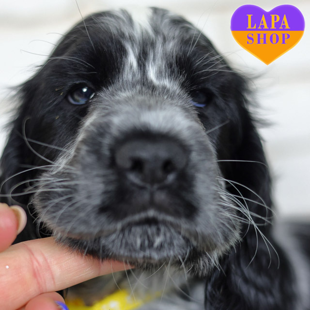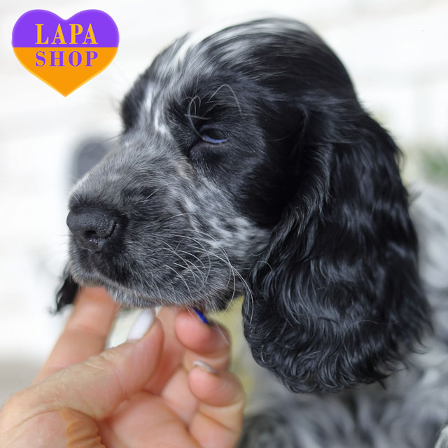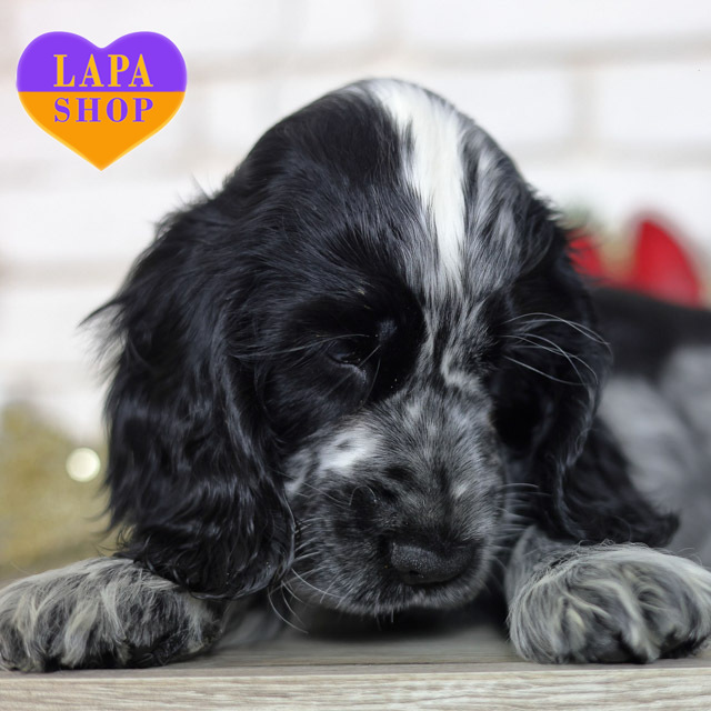 Ця чарівна дівчинка породи англійський кокер спаніель у граційному забарвленні blue roan неодмінно підкорить ваше серце. Вона з нетерпінням чекає зустрічі з новою родиною.