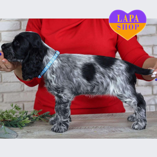 Гарненька дівчинка породи англійський кокер спаніель із вишуканим забарвленням блю роан чекає на свою люблячу родину. Її грація та краса здатні зачарувати будь-кого.