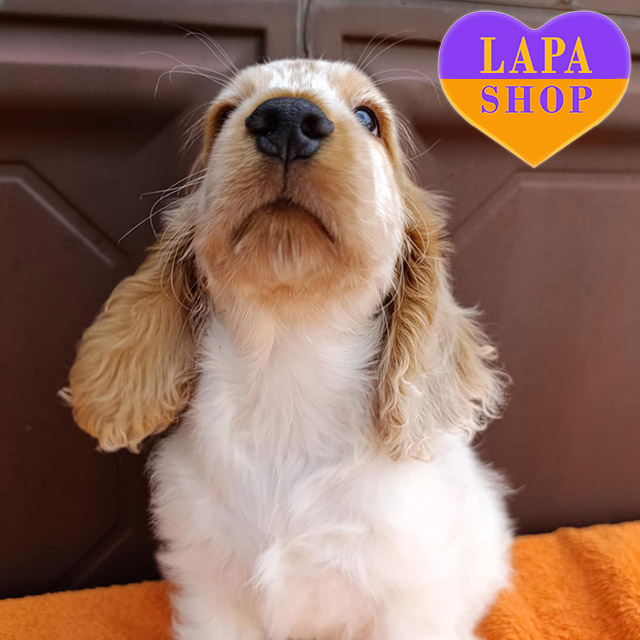 Милий хлопчик породи англійський кокер-спанієль з рідкісним чало-рудим забарвленням і гарно вираженим кольоровим контрастом. Має гармонійну будову, ніжний вираз мордочки та розкішні вушка. Його яскрава зовнішність підкорює з першого погляду.