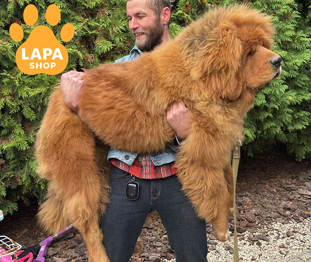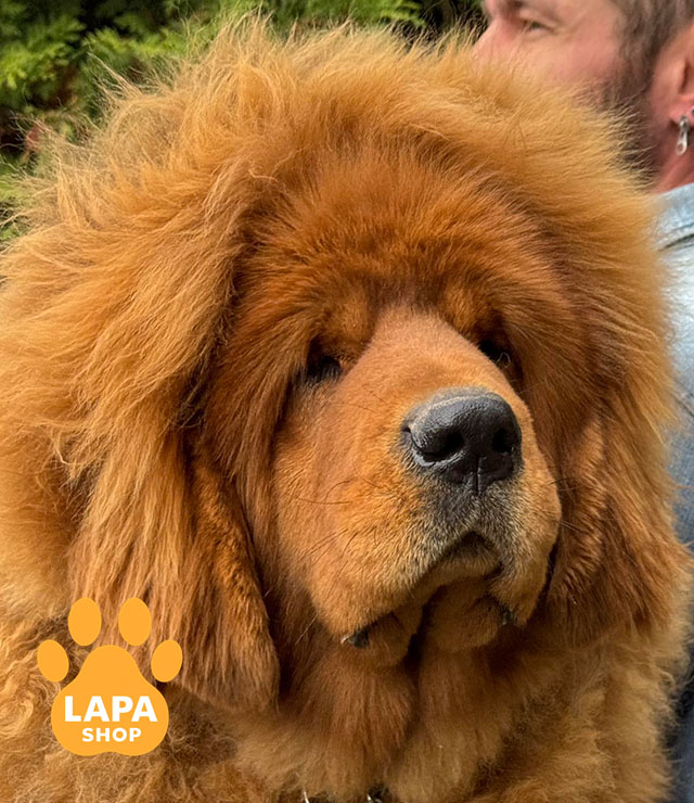 Ця велична дівчинка породи тибетський мастиф з розкішним червоним забарвленням. Її потужна статура і густе хутро додають їй особливої величі та аристократичного вигляду.