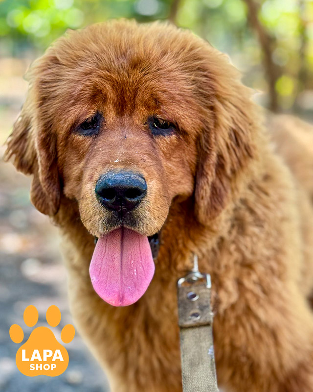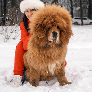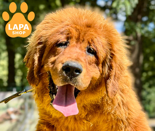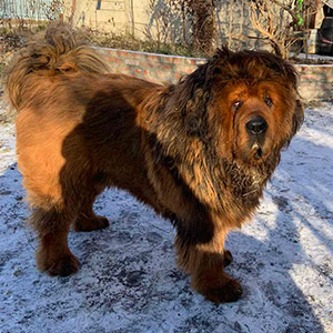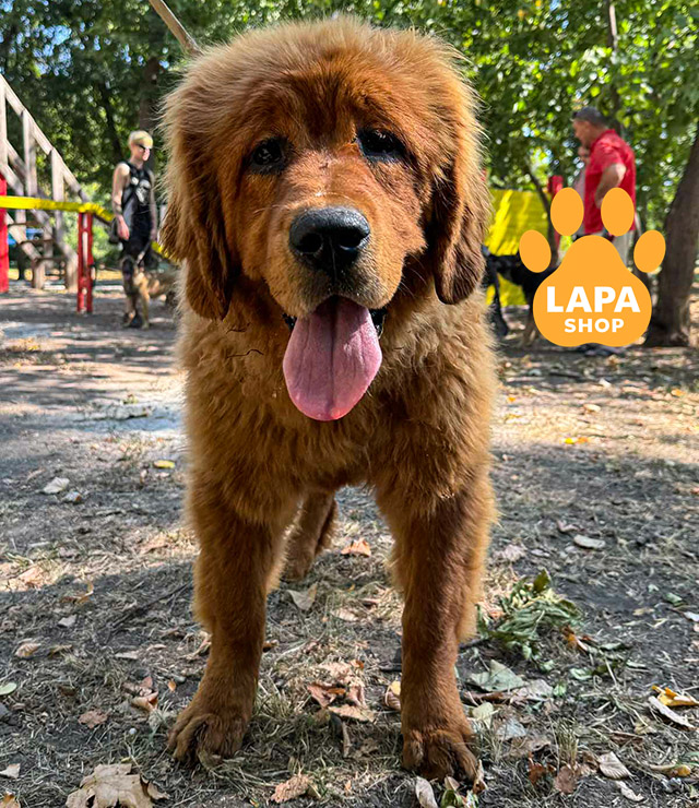 Велична дівчинка породи тибетський мастиф із яскравим червоним забарвленням. Її гармонійна статура та красивий екстер’єр роблять її привабливою для будь-якої родини.