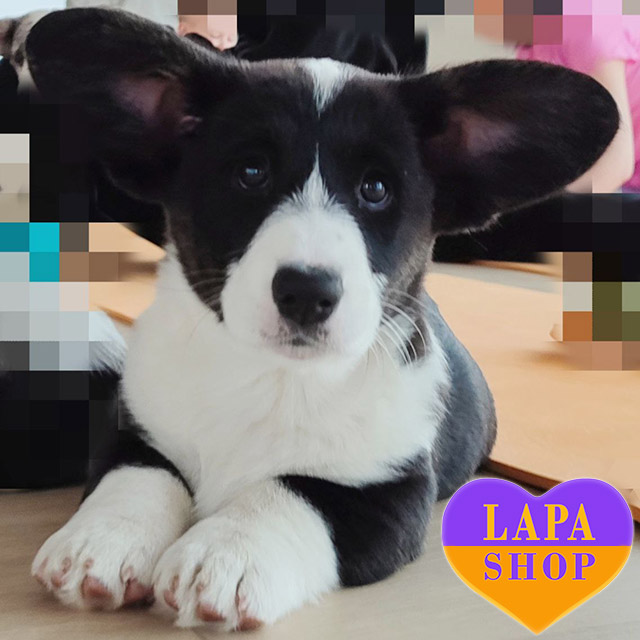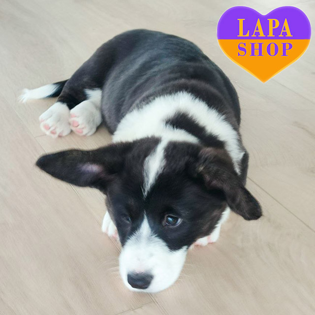 Ця мила дівчинка породи вельш-коргі кардіган з яскравим триколорним забарвленням, що робить її справжньою окрасою серед цуценят. Її міцна статура та виразні очі підкреслюють типову зовнішність породи. Вона неодмінно приверне вашу увагу своєю гармонійною зовнішністю.