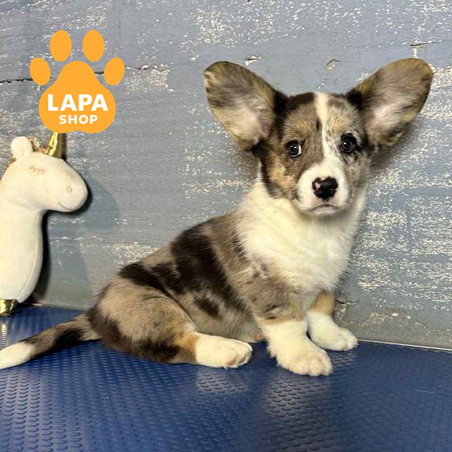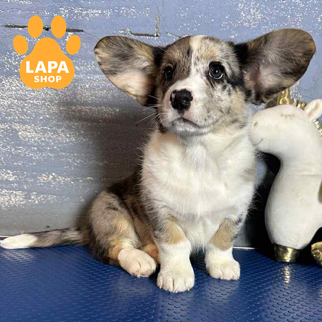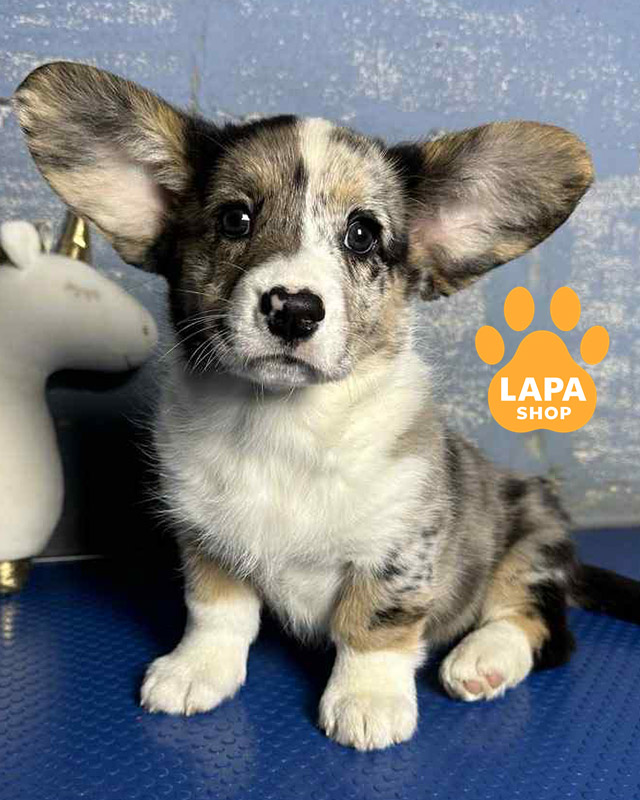 Мила дівчинка породи вельш коргі кардиган з чудовим мармуровим забарвленням. Її яскрава та гармонійна шерсть підкреслює породність та робить зовнішність особливо привабливою. Малеча має правильну статуру та виразну мордочку, що робить її справжнім скарбом серед цуценят.