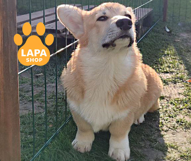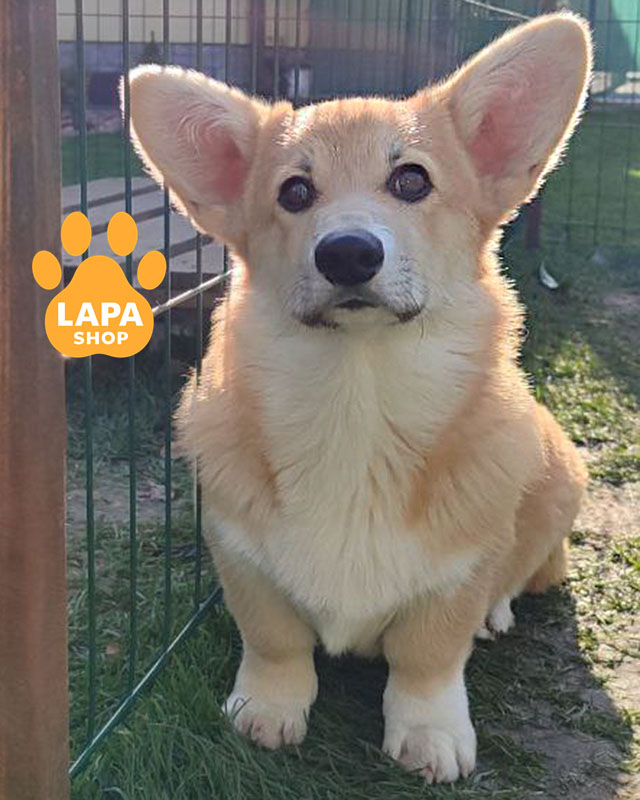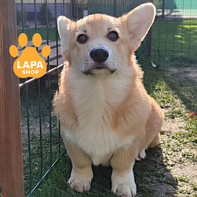 Милий хлопчик породи вельш коргі пемброк з гармонійним рудо-білим забарвленням. Має пропорційний корпус і виразну мордочку, що підкреслює його породну елегантність. Його шерсть доглянута та блискуча, додає особливого шарму зовнішньому вигляду.