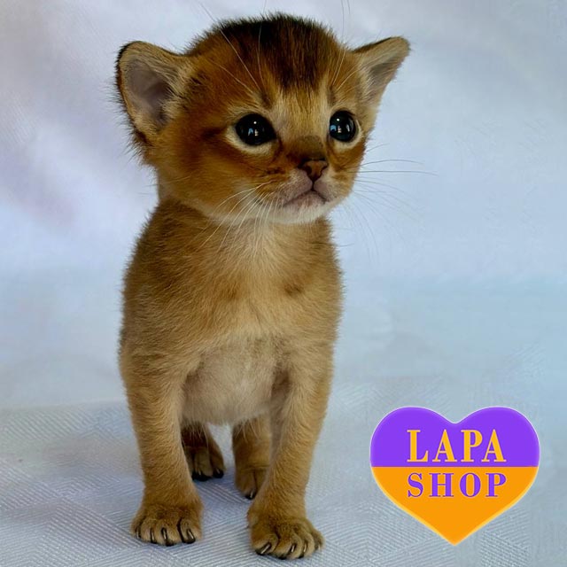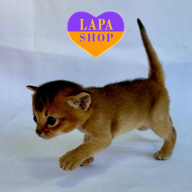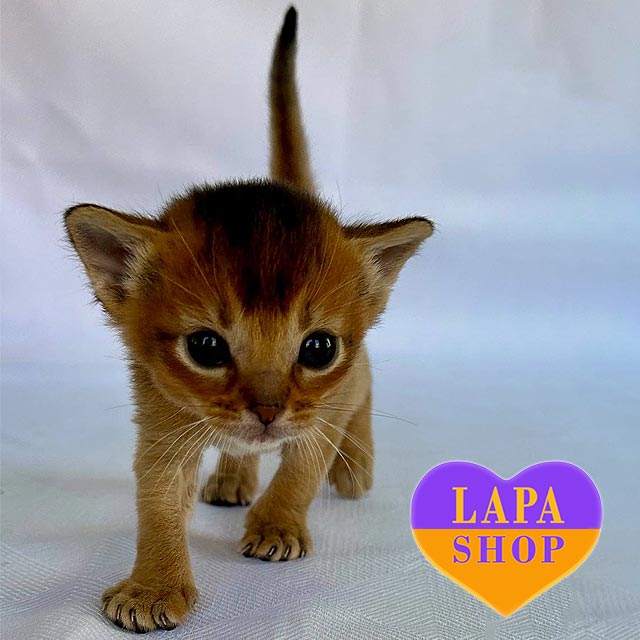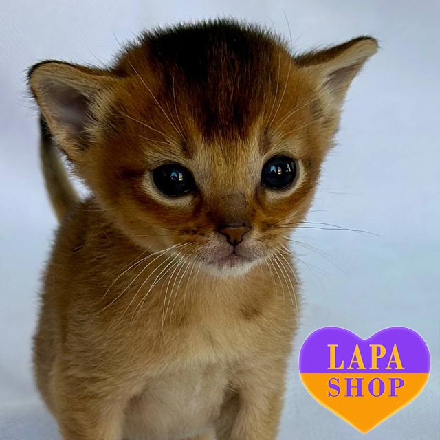 This little Abyssinian princess amazes with her wild beauty and elegance. Her short coat with golden highlights and a brightly expressed muzzle make her look like a true creation of nature.