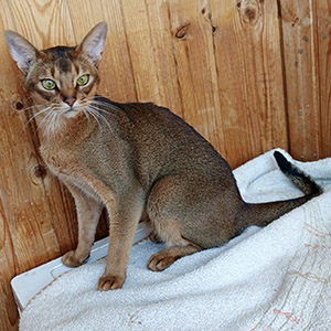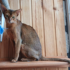 Big Carat is an elegant Abyssinian cat with a classic wild(n) coloring. His thick and shiny fur harmoniously combines with bright eyes, making him a real decoration of any home. The sophisticated appearance of this handsome man attracts attention and gives a feeling of comfort.