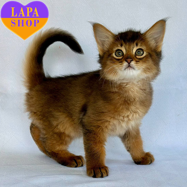 Wolf is a graceful Somali boy in ruddy color. His luxurious fluffy fur in ruddy color shines with warm shades.