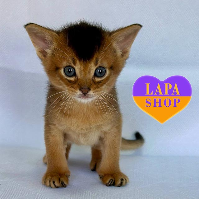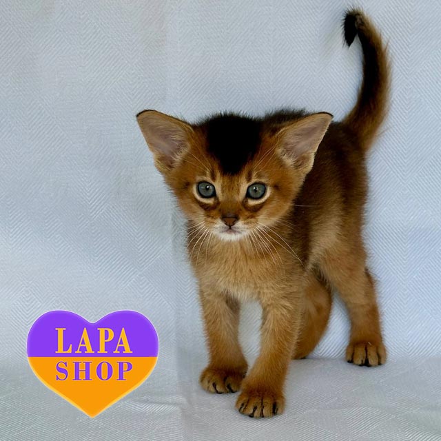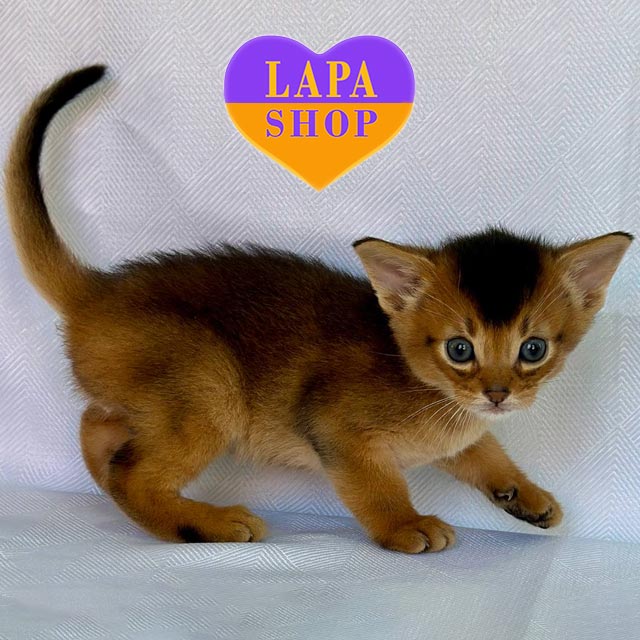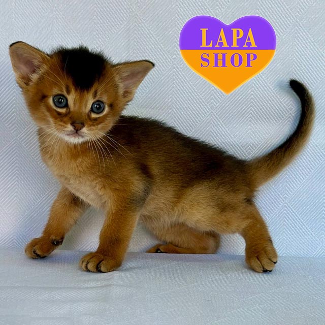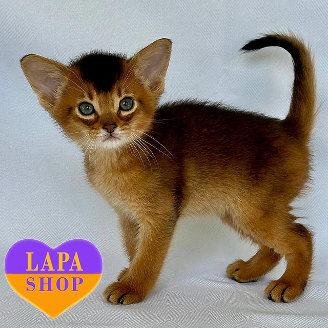 Zevs is a handsome Abyssinian in ruddy color. His ruddy color emphasizes the grace of his movements and natural charisma.
