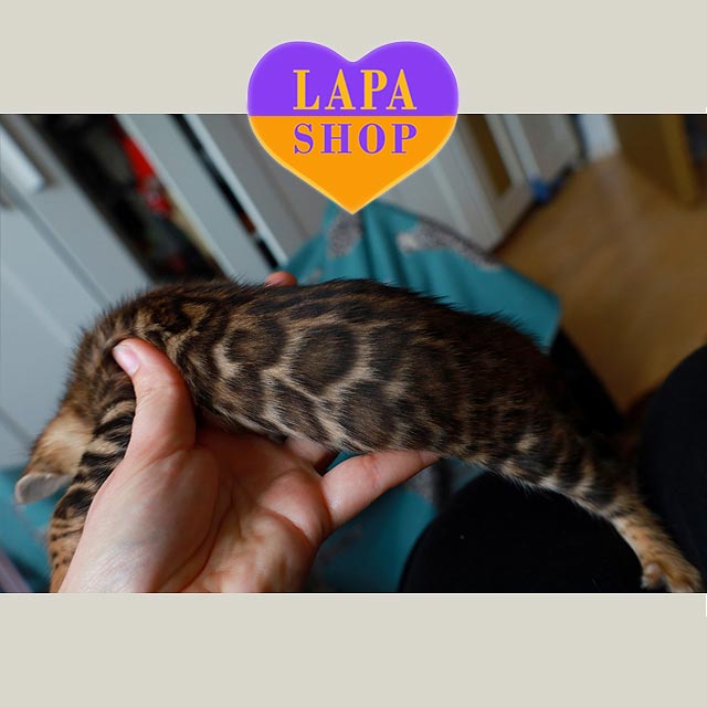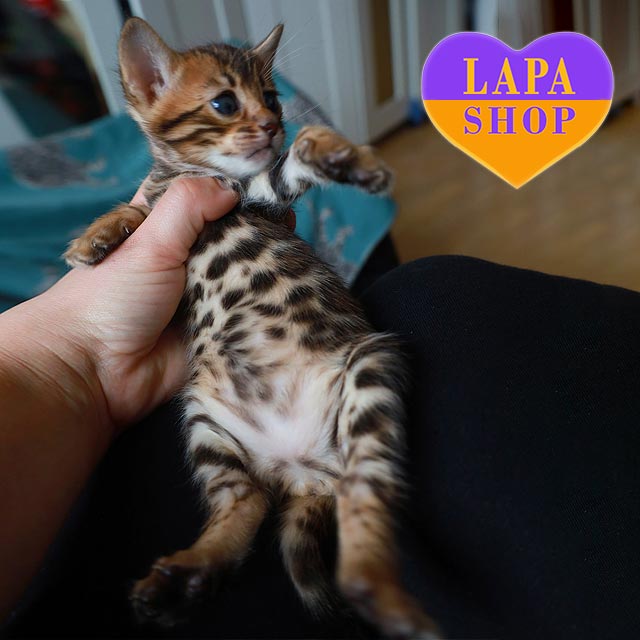 Has bought the Bengal kitten The main reason we chose Lapa.shop was to find and buy a healthy, purebred kitten from a reputable breeder. There are many ads on the internet, and it takes a lot of time to check each seller. The purchase process was very convenient: payment is made on the website, but the money does not go directly to the breeder. Instead, it remains temporarily with Lapa.shop until you actually receive your pet (this guarantees that the breeder will not disappear). We really liked the breeder, Elena. We had to wait a month to receive the kitten, but my wife and I really wanted to see how he was growing, how he was playing, and we generally started to miss him in advance. Elena periodically sent us videos of him, which we eagerly awaited and watched several times. We also wanted to talk to her and get advice on kitten adaptation, upbringing, feeding, and so on. We received Leon vaccinated and fully ready for the trip, with all the documents. The kitten quickly adapted to his new home. He went to the litter box for the first time the same day, and in a couple of days, he went to the big litter box. We are now the happy owners of a magnificent Bengal boy.