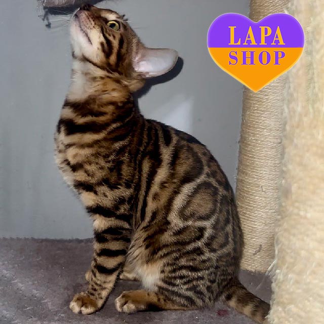 Playful and curious, she embodies the Bengal breed’s natural elegance and energetic spirit, making her a captivating and lively companion.