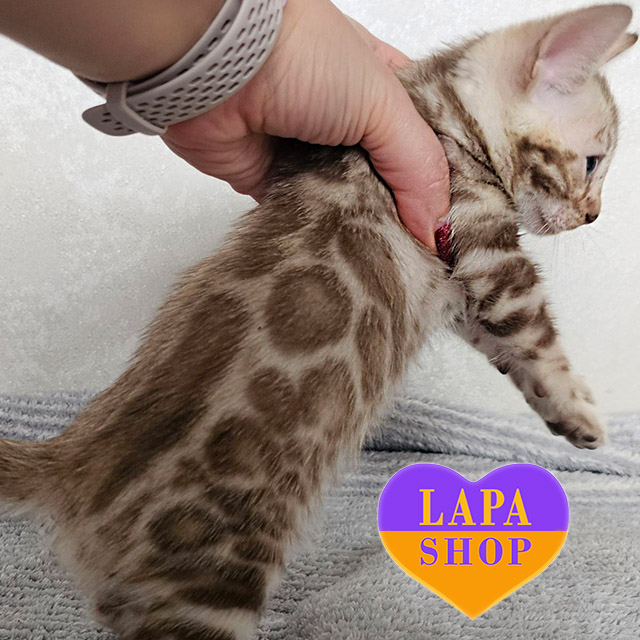 Has bought the Bengal kitten The main reason we chose Lapa.shop was to find and buy a healthy, purebred kitten from a reputable breeder. There are many ads on the internet, and it takes a lot of time to check each seller. The purchase process was very convenient: payment is made on the website, but the money does not go directly to the breeder. Instead, it remains temporarily with Lapa.shop until you actually receive your pet (this guarantees that the breeder will not disappear). We really liked the breeder, Elena. We had to wait a month to receive the kitten, but my wife and I really wanted to see how he was growing, how he was playing, and we generally started to miss him in advance. Elena periodically sent us videos of him, which we eagerly awaited and watched several times. We also wanted to talk to her and get advice on kitten adaptation, upbringing, feeding, and so on. We received Leon vaccinated and fully ready for the trip, with all the documents. The kitten quickly adapted to his new home. He went to the litter box for the first time the same day, and in a couple of days, he went to the big litter box. We are now the happy owners of a magnificent Bengal boy.