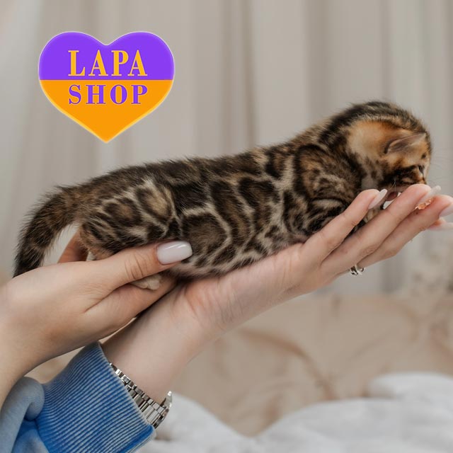 Has bought the Bengal kitten The main reason we chose Lapa.shop was to find and buy a healthy, purebred kitten from a reputable breeder. There are many ads on the internet, and it takes a lot of time to check each seller. The purchase process was very convenient: payment is made on the website, but the money does not go directly to the breeder. Instead, it remains temporarily with Lapa.shop until you actually receive your pet (this guarantees that the breeder will not disappear). We really liked the breeder, Elena. We had to wait a month to receive the kitten, but my wife and I really wanted to see how he was growing, how he was playing, and we generally started to miss him in advance. Elena periodically sent us videos of him, which we eagerly awaited and watched several times. We also wanted to talk to her and get advice on kitten adaptation, upbringing, feeding, and so on. We received Leon vaccinated and fully ready for the trip, with all the documents. The kitten quickly adapted to his new home. He went to the litter box for the first time the same day, and in a couple of days, he went to the big litter box. We are now the happy owners of a magnificent Bengal boy.