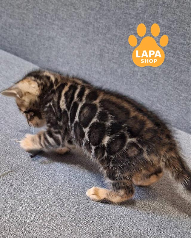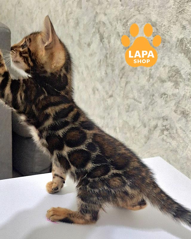 Has bought the Bengal kitten The main reason we chose Lapa.shop was to find and buy a healthy, purebred kitten from a reputable breeder. There are many ads on the internet, and it takes a lot of time to check each seller. The purchase process was very convenient: payment is made on the website, but the money does not go directly to the breeder. Instead, it remains temporarily with Lapa.shop until you actually receive your pet (this guarantees that the breeder will not disappear). We really liked the breeder, Elena. We had to wait a month to receive the kitten, but my wife and I really wanted to see how he was growing, how he was playing, and we generally started to miss him in advance. Elena periodically sent us videos of him, which we eagerly awaited and watched several times. We also wanted to talk to her and get advice on kitten adaptation, upbringing, feeding, and so on. We received Leon vaccinated and fully ready for the trip, with all the documents. The kitten quickly adapted to his new home. He went to the litter box for the first time the same day, and in a couple of days, he went to the big litter box. We are now the happy owners of a magnificent Bengal boy.